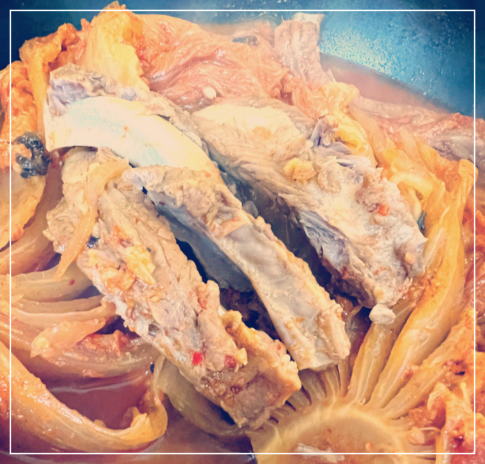 김장이 시작되기 전 묵은지와 함께 돼지갈비 등뼈를 함께 넣어 만드는 등갈비 김치찜