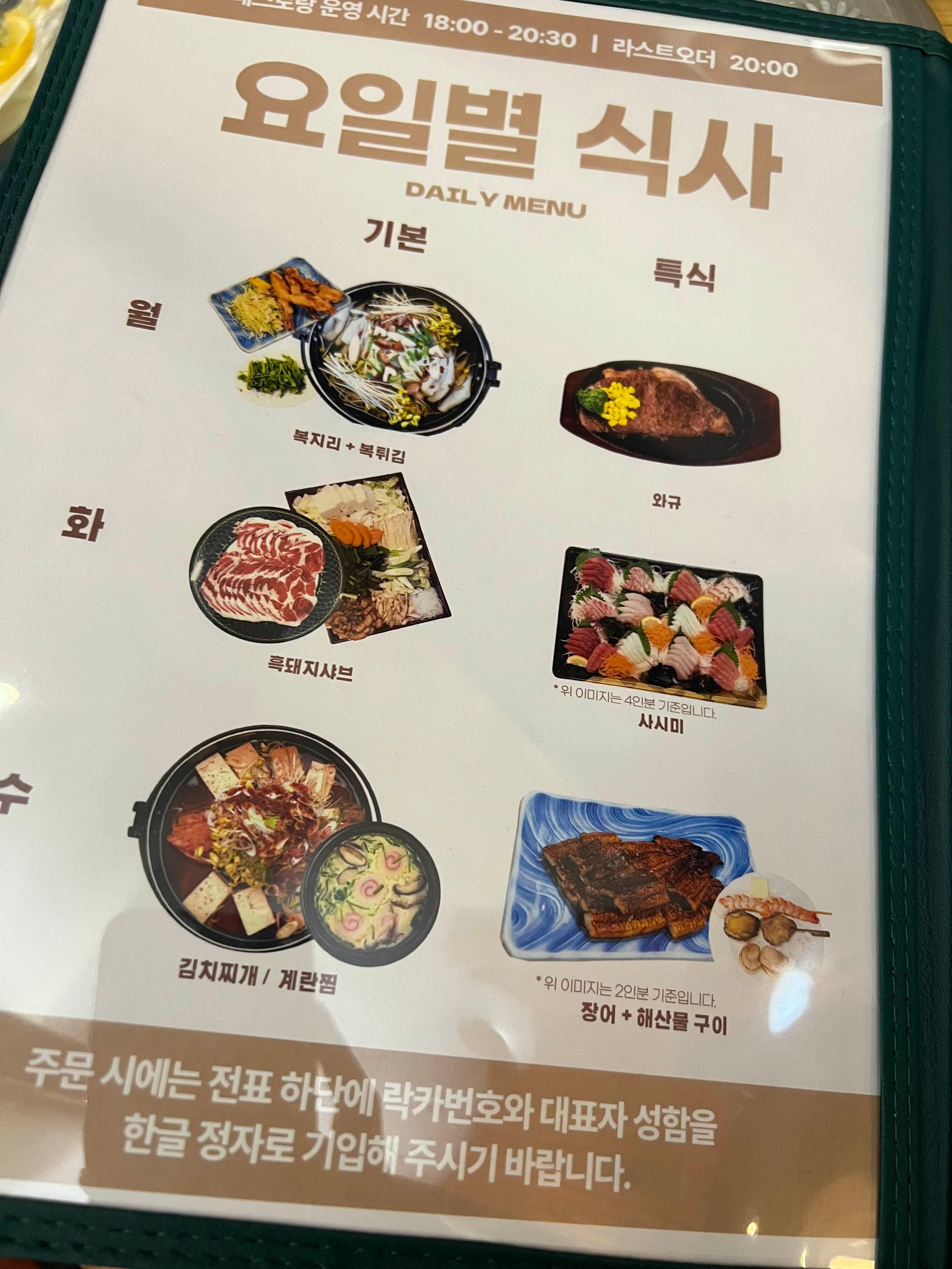 요일별로 메뉴가 다릅니다.