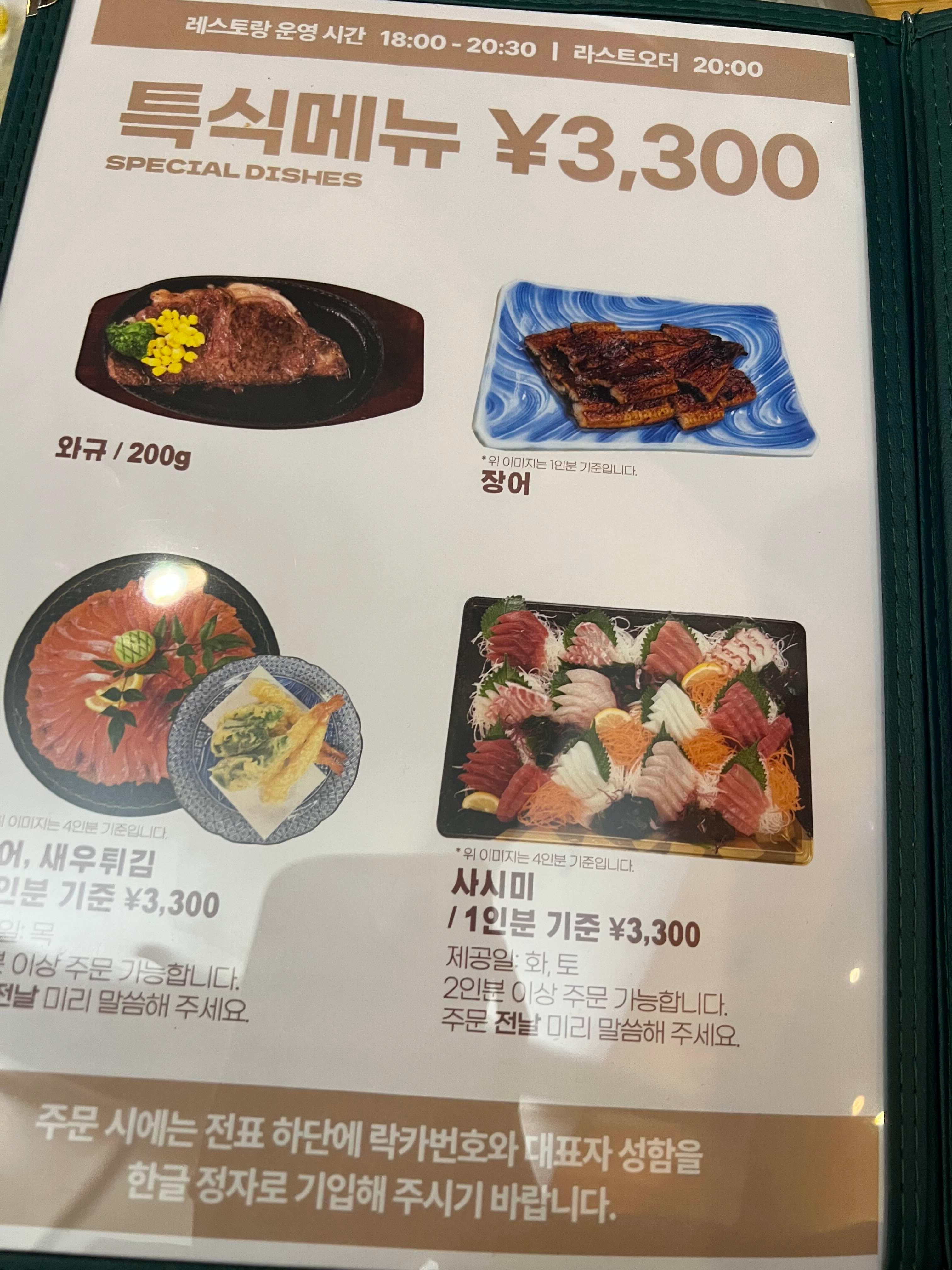 특식메뉴는 3300엔