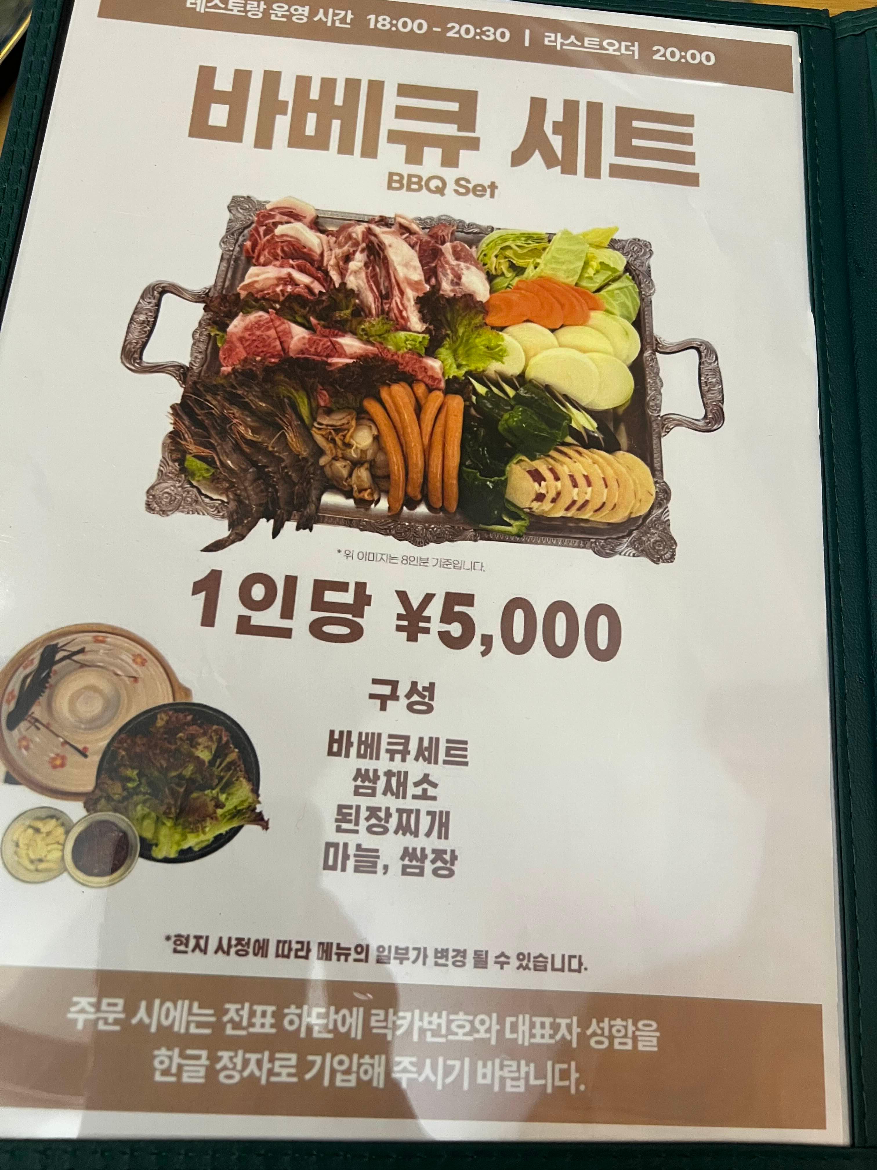 식당 외부에는 천막이 있었는데 그곳에서 바베큐 세트를 먹을 수 있었던 것 같아요