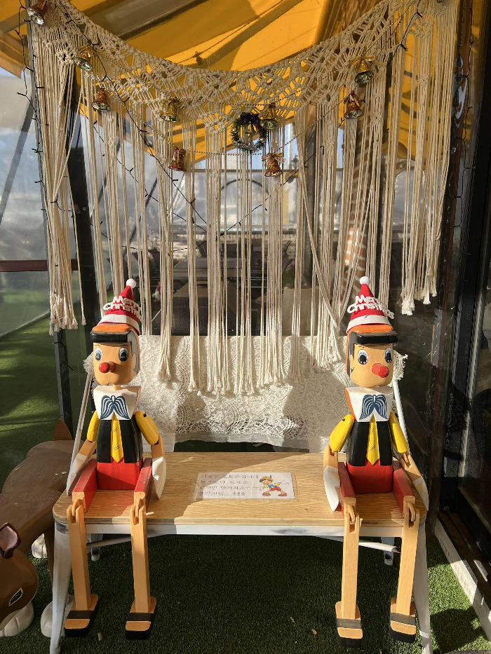 피노키오 사이에 앉아 인증샷도 한번 찍고요
