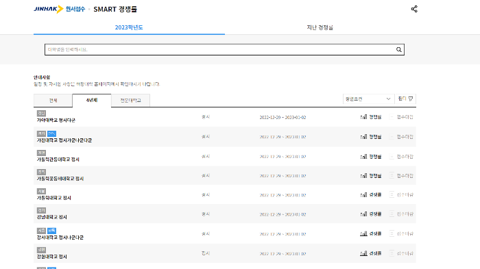 각 학교별 경쟁률은 진학사 스마트경쟁률에서 확인해 볼 수 있습니다